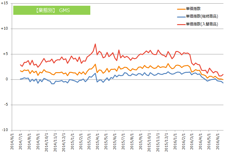 単価指数については、継続商品、入替商品の2区分で傾向変化を確認いただくことが可能です。
